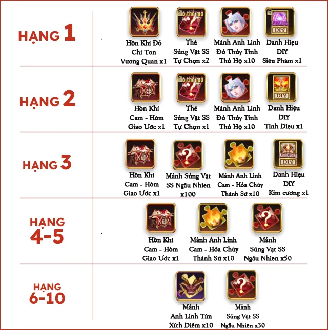 | Top | Tên nhân vật | Chiến lực | Máy chủ |